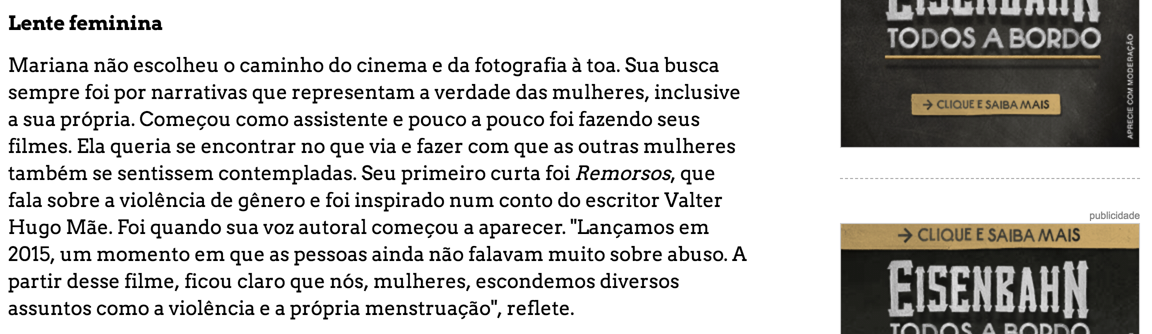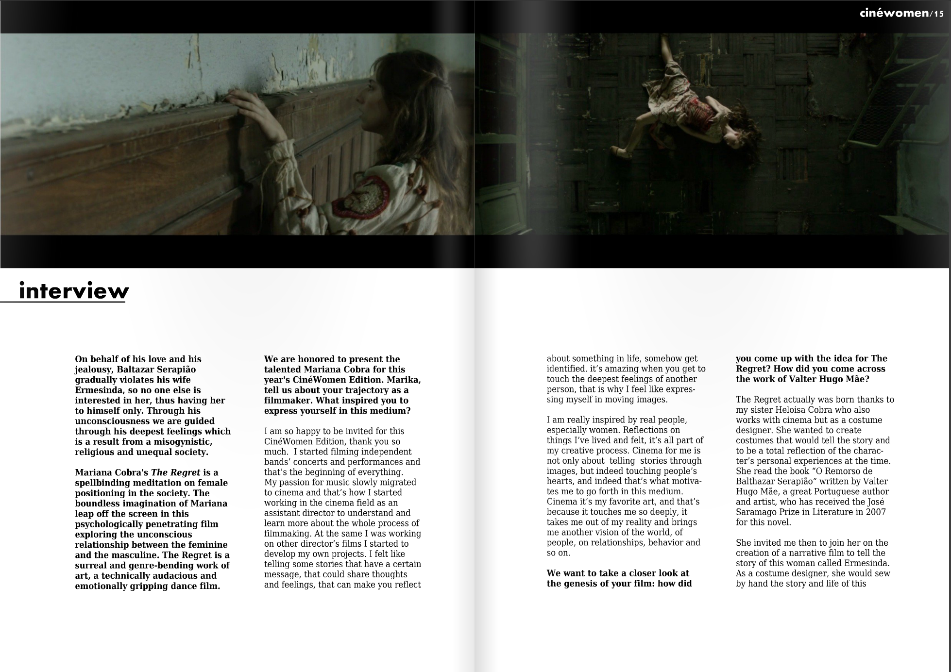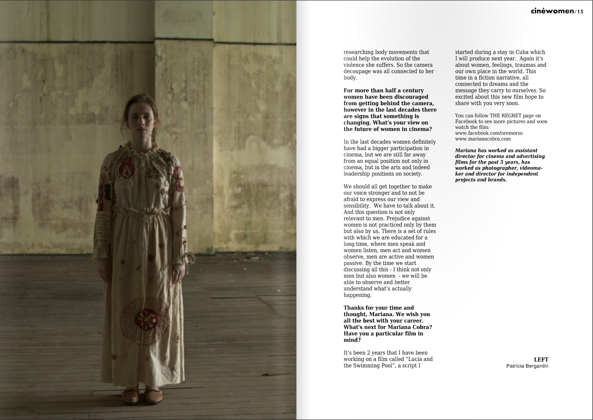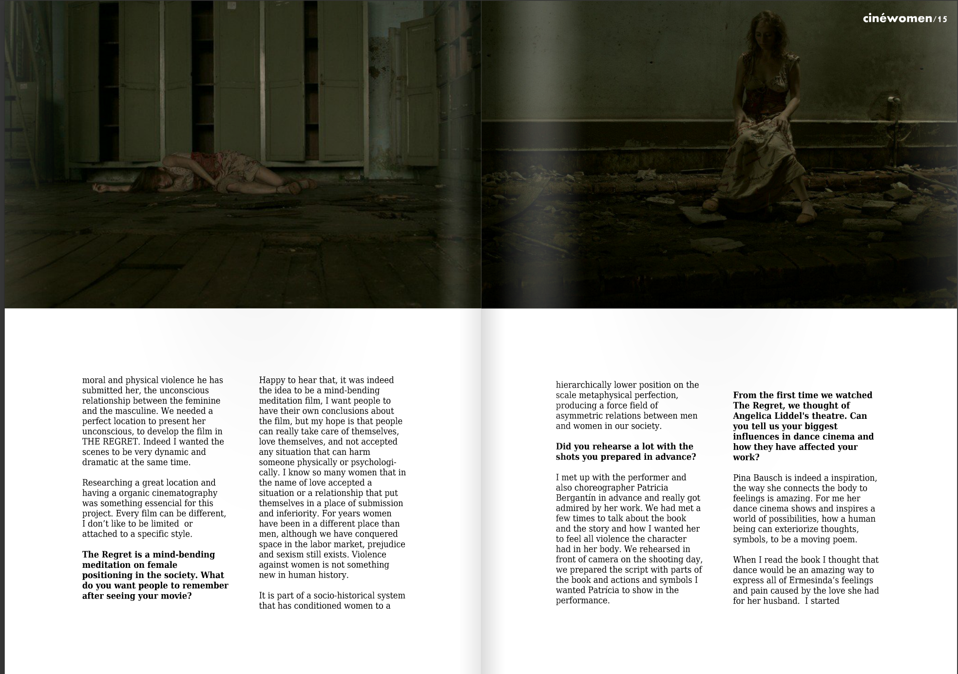 Interview for CINEWOMEN magazine issue regarding the work on the shortfilm "O REMORSO" (The Regret).